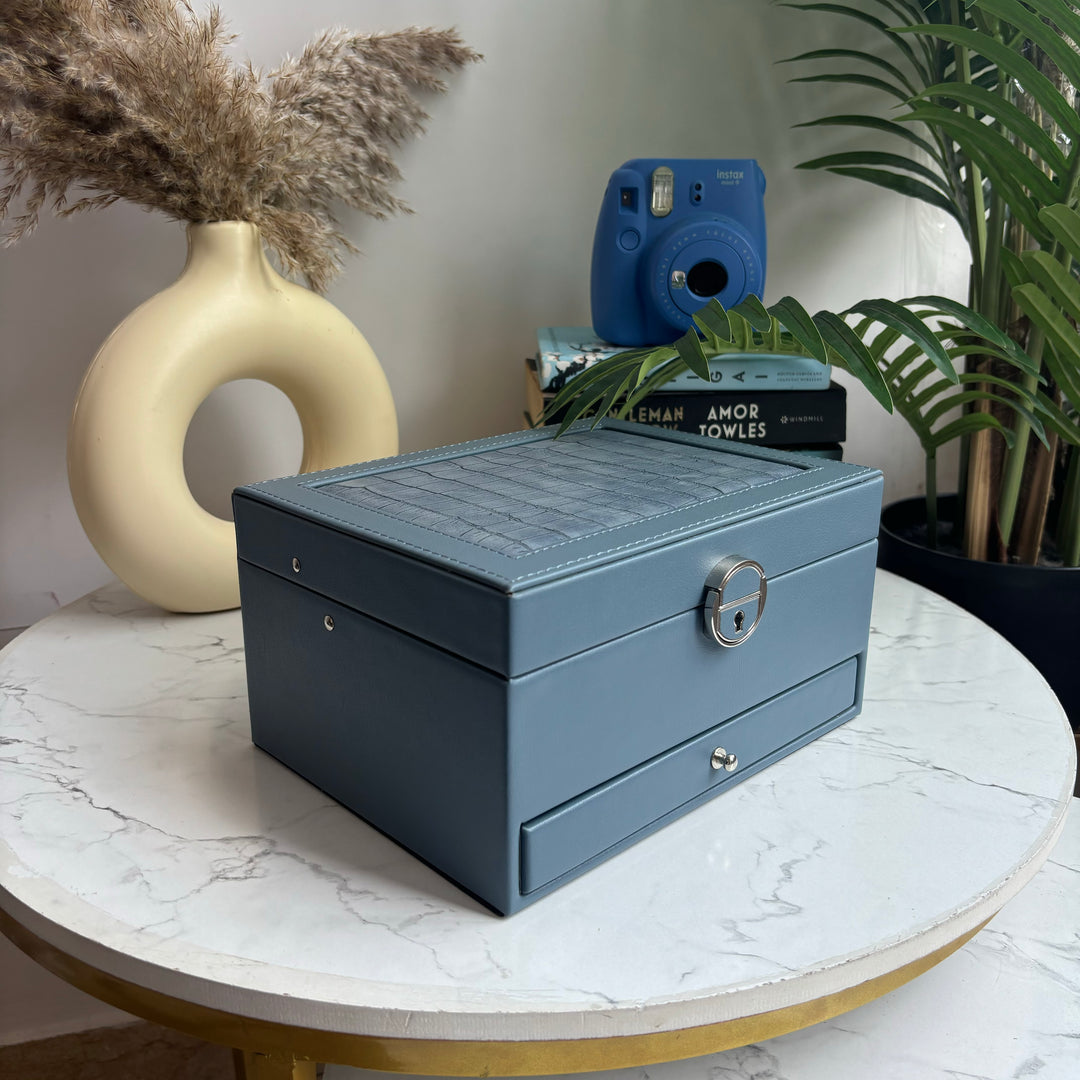 Box it up is an organiser that is sure to add an element of style to your wardrobe. It has multiple sections for rings, smaller as well as bigger jewellery. It has separate section to fit 3 chains and contains a small mirror too. It has a detachable drawer on the lower side. The small and big accessory sections have detachable partitions so you can size them as per the size of your jewellery.
