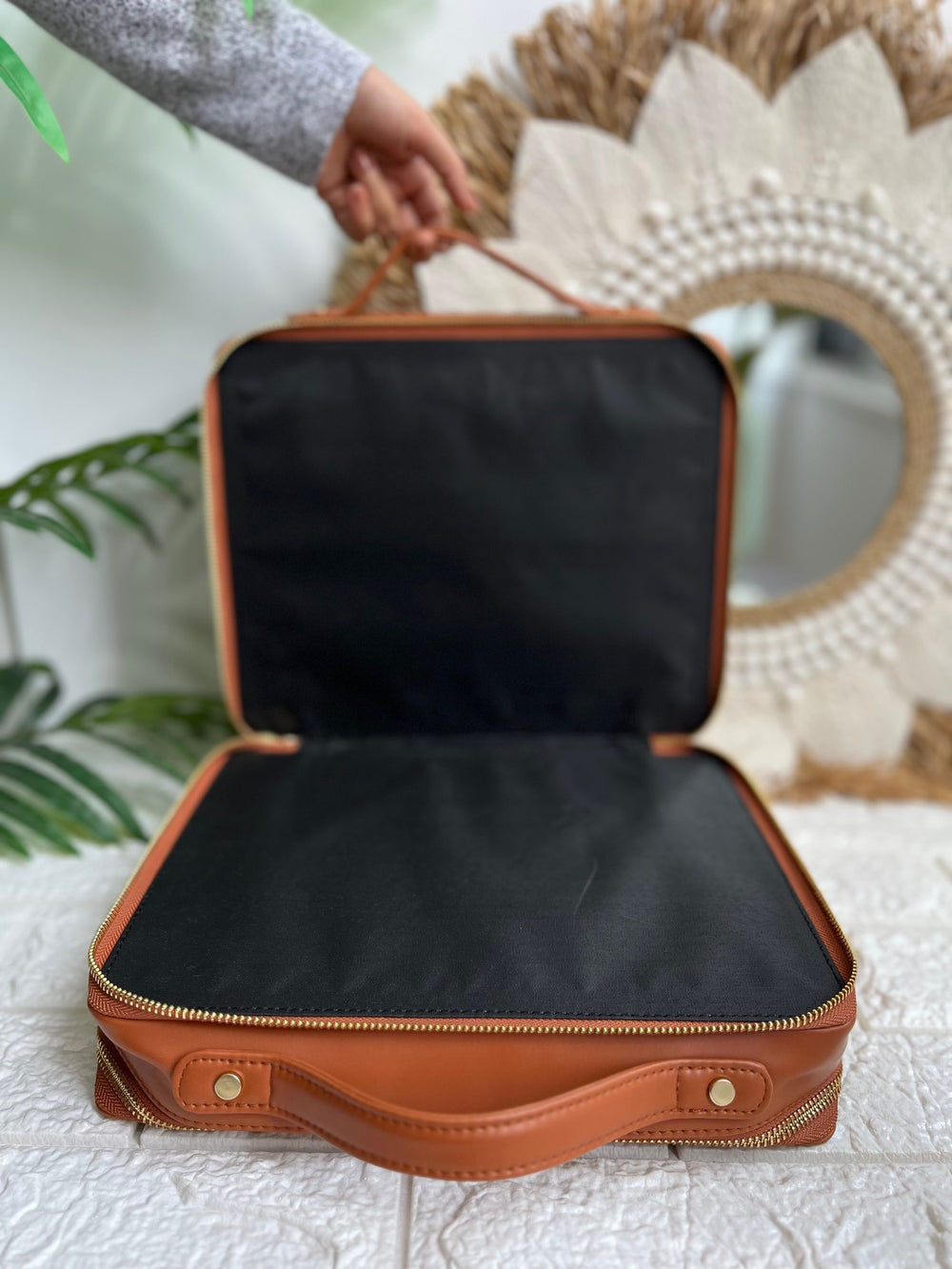 Introducing The Ultimate Travel Briefcase, a game-changer in cosmetic storage. Featuring dual openings on both sides and a central section for flat items, this organizer maximizes space and accessibility. Crafted for durability and style, it offers divided storage for seamless organization. Elevate your beauty routine with this versatile, portable, and elegant solution.