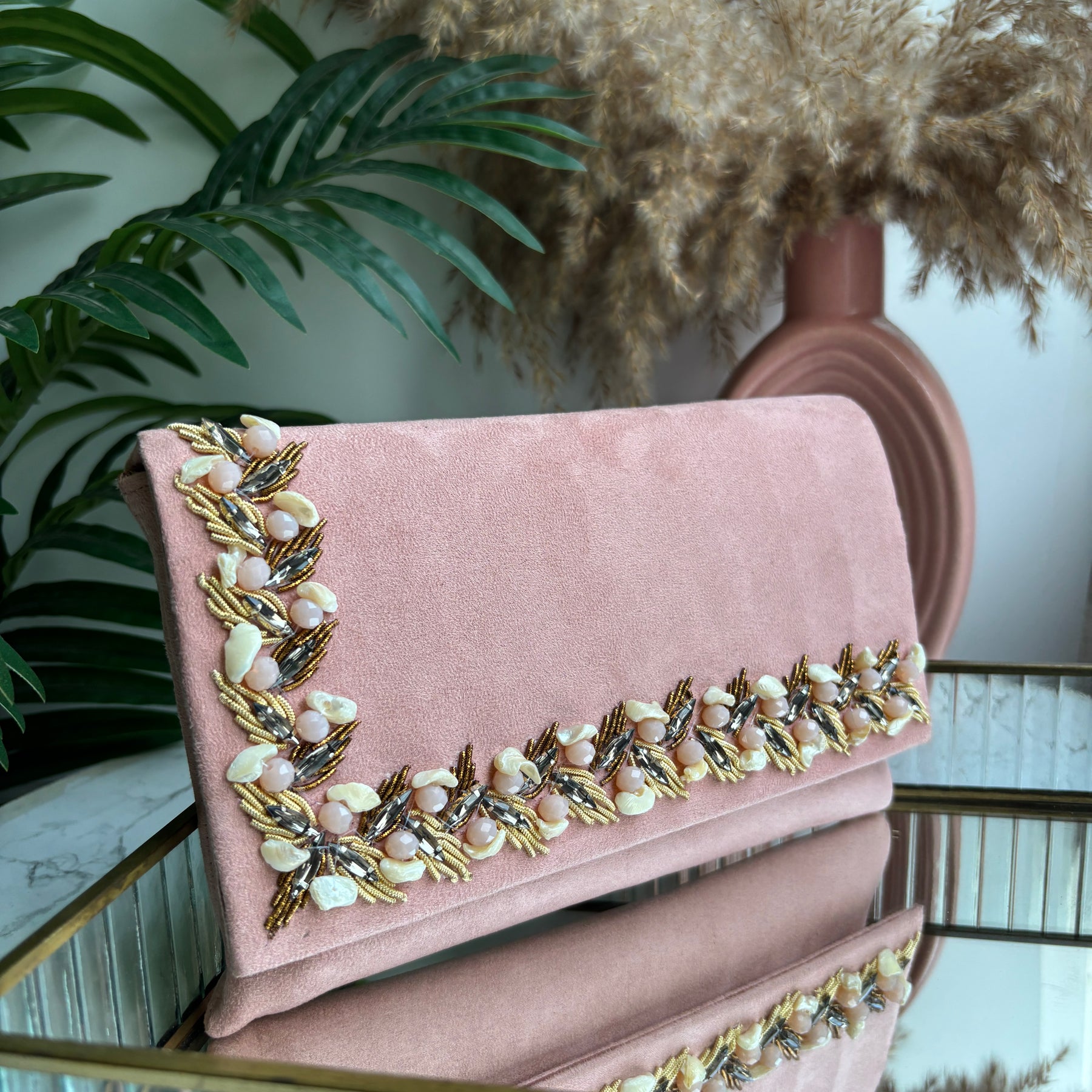 Elevate your occasion style with our Suede Stone Clutch, crafted to add just the right touch of elegance and sparkle to your outfit. Made using premium suede fabric, this clutch features beautiful handwork and stone embellishments, giving it a rich, luxurious festive appeal that stands out effortlessly.