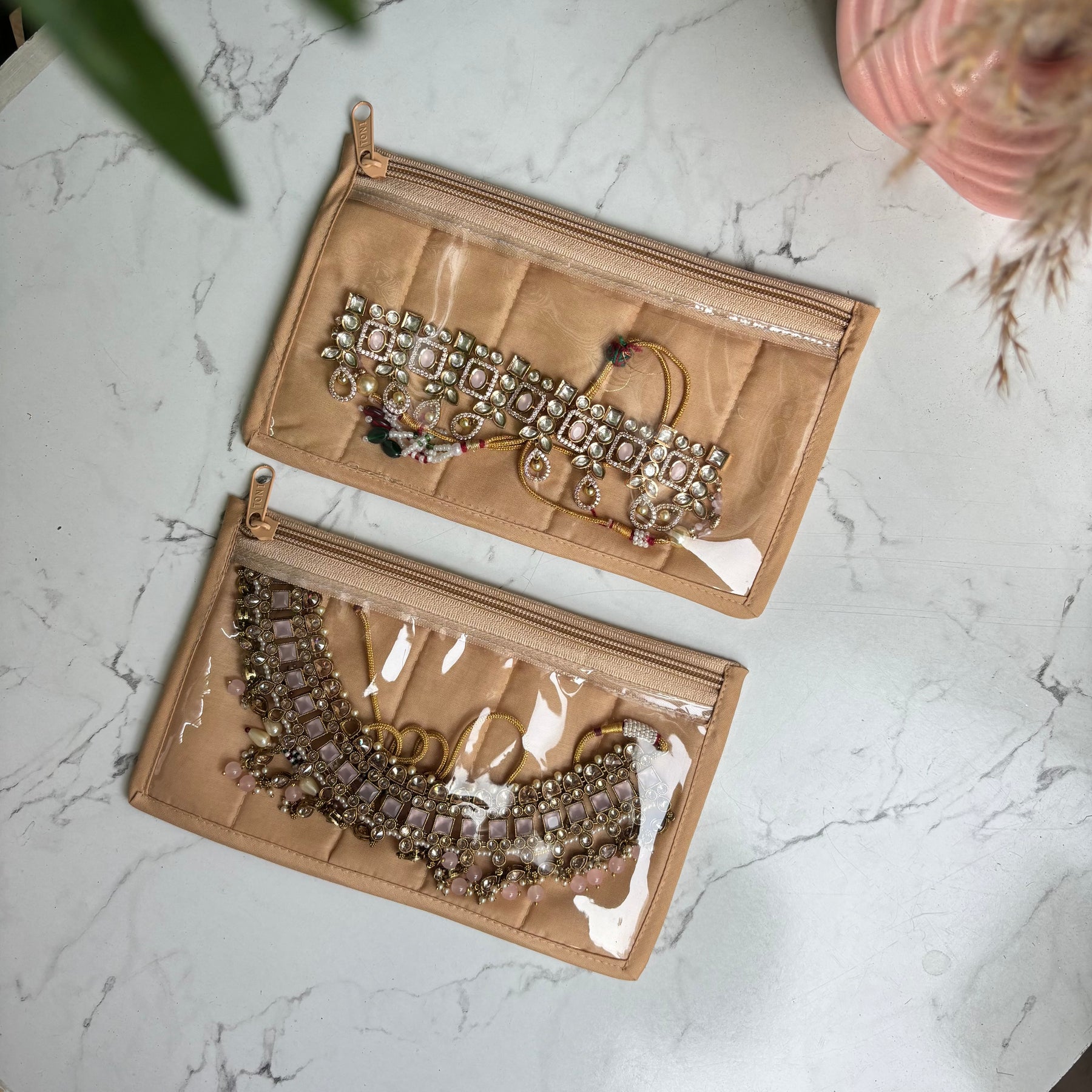 The organiser includes 4 small pouches, 2 long pouches, 2 necklace trays, and 2 additional sections on the flap, giving you dedicated space for earrings, rings, bracelets, chains, studs and delicate accessories. Each pouch is detachable, making organising and packing effortless.