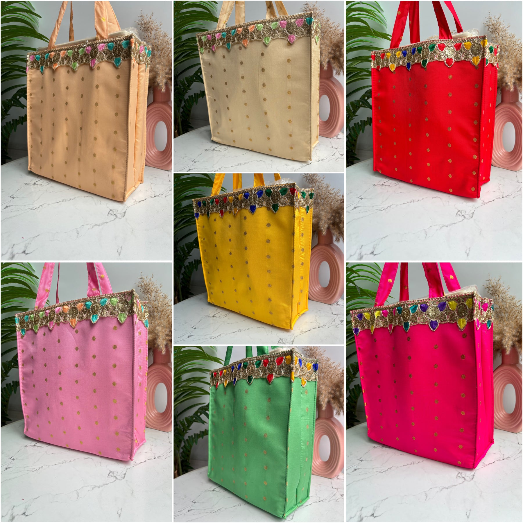 Lightweight yet durable, each bag is designed to hold small treasures like sweets, jewellery, dry fruits, or keepsakes, making them a stylish alternative to traditional packaging. Their rich fabric and timeless appeal ensure your gifts look as special as the moments you’re celebrating.
