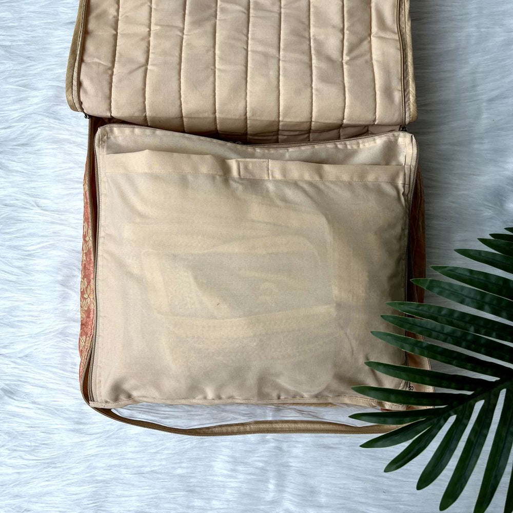 The outer pouch can then be used to store more clothes such as your blankets or heavier lehengas.