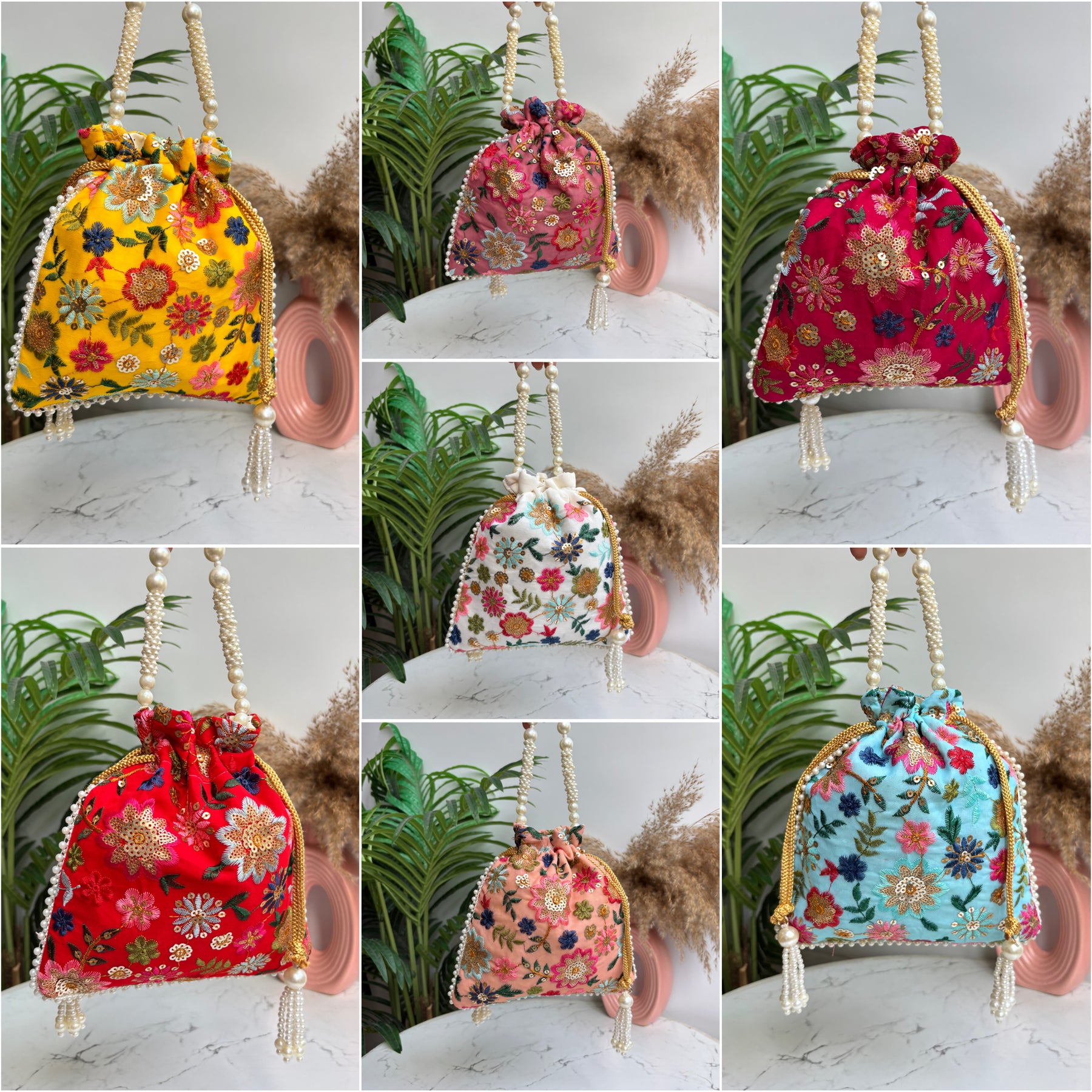 Please note : The potlis will come in mixed colours. And since the fabric used are machine made fabric, there can be some imperfections in some of the potlis as these are budget friendly potlis.