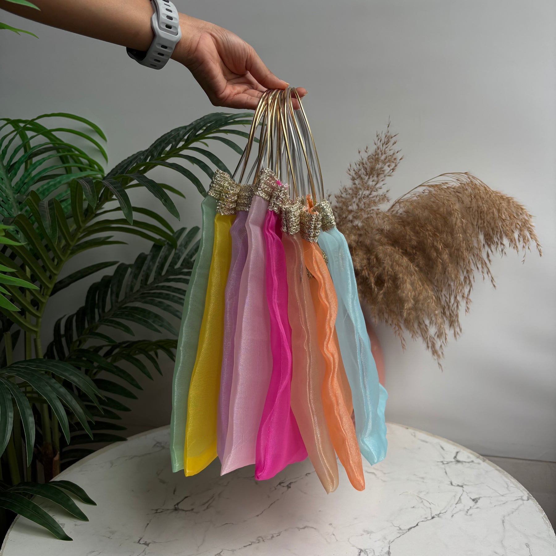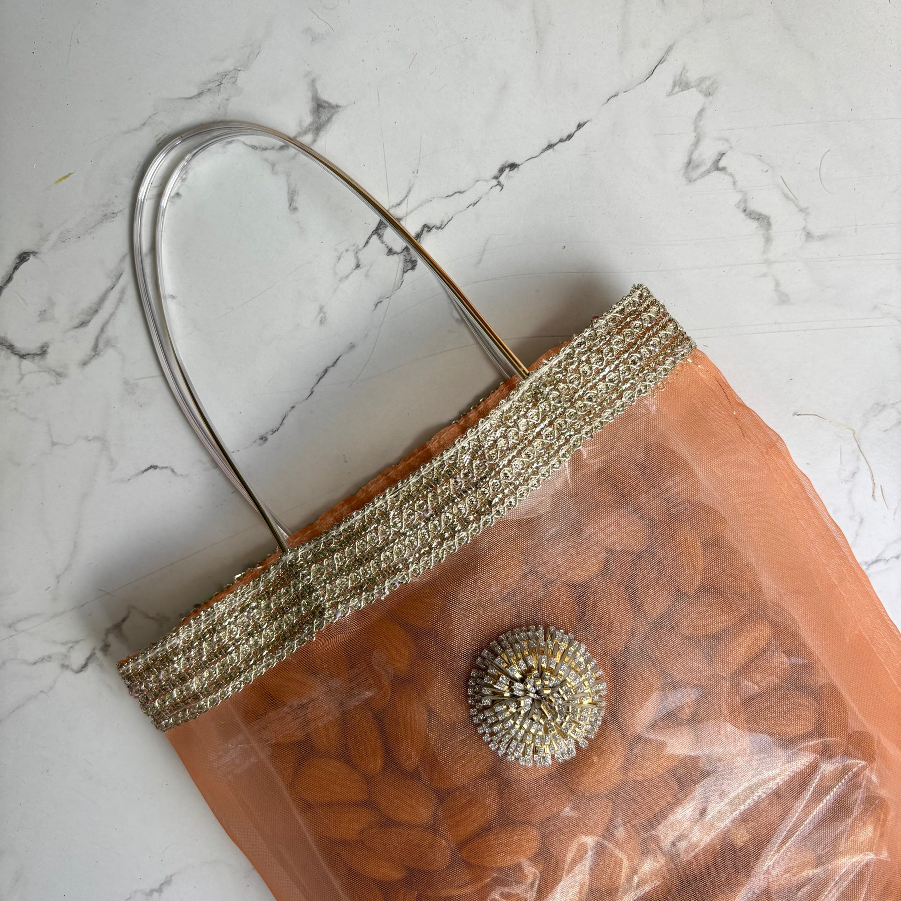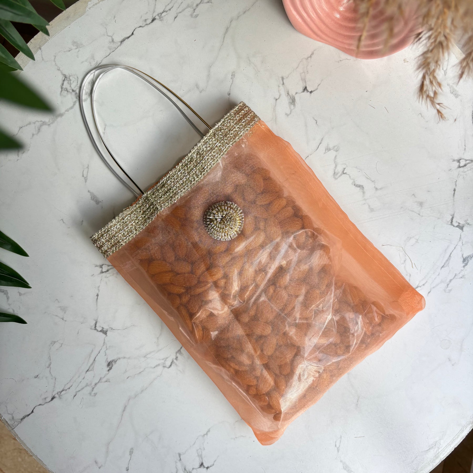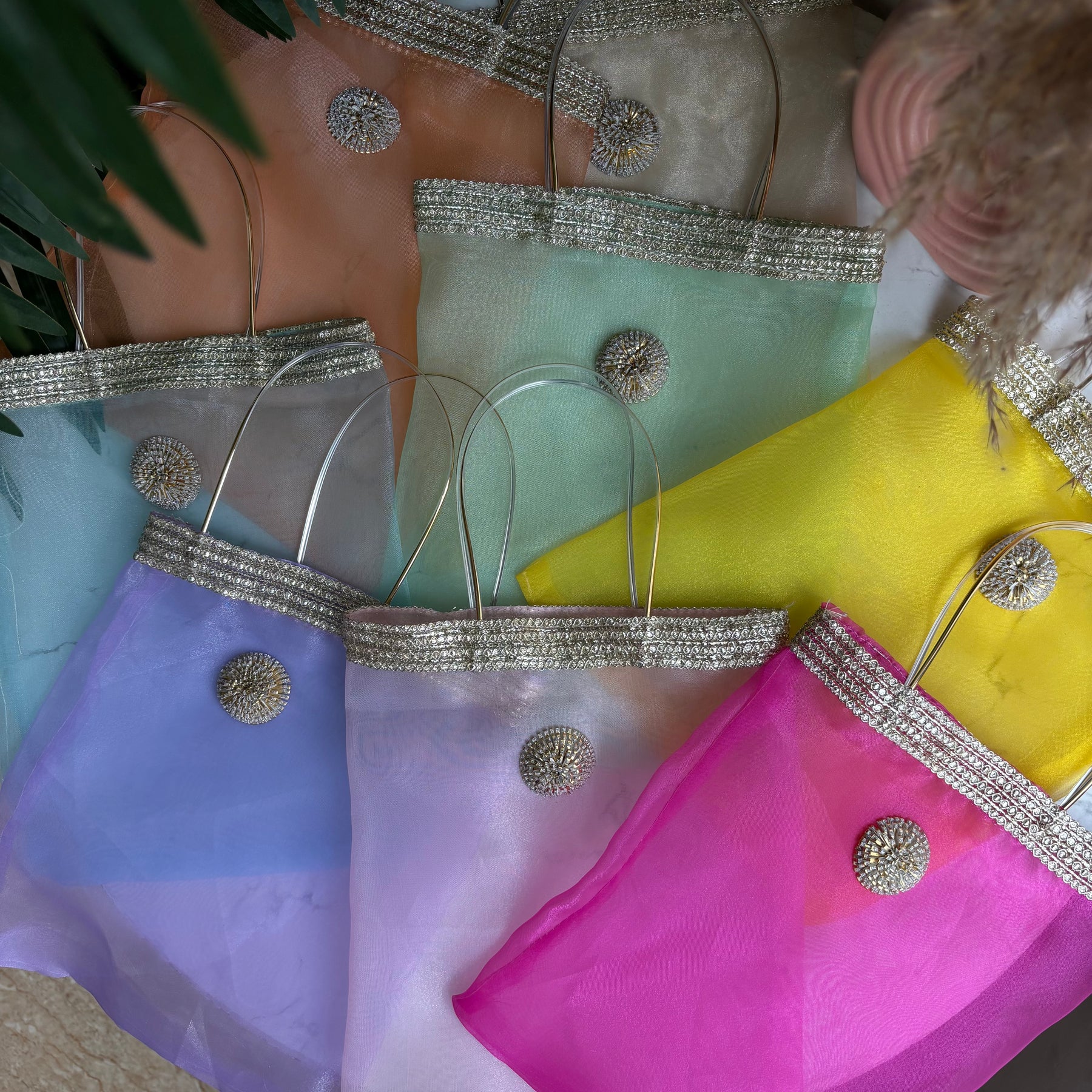 Make your gifting unforgettable with our Organza Shine Mini Bags, designed to bring a luxurious touch to every celebration. Crafted in premium shimmer organza fabric and finished with a sturdy handle, these mini bags are perfect for presenting dry fruits, sweets, hampers, or return favours in style.